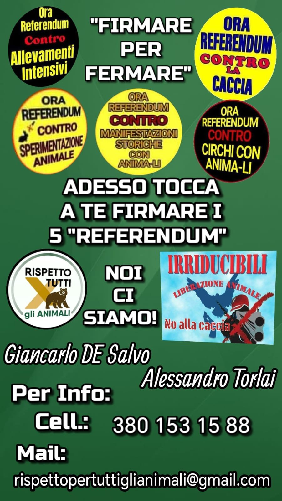 RACCOLTA FIRME PER REFERNDUM CONTRO LA CACCIA