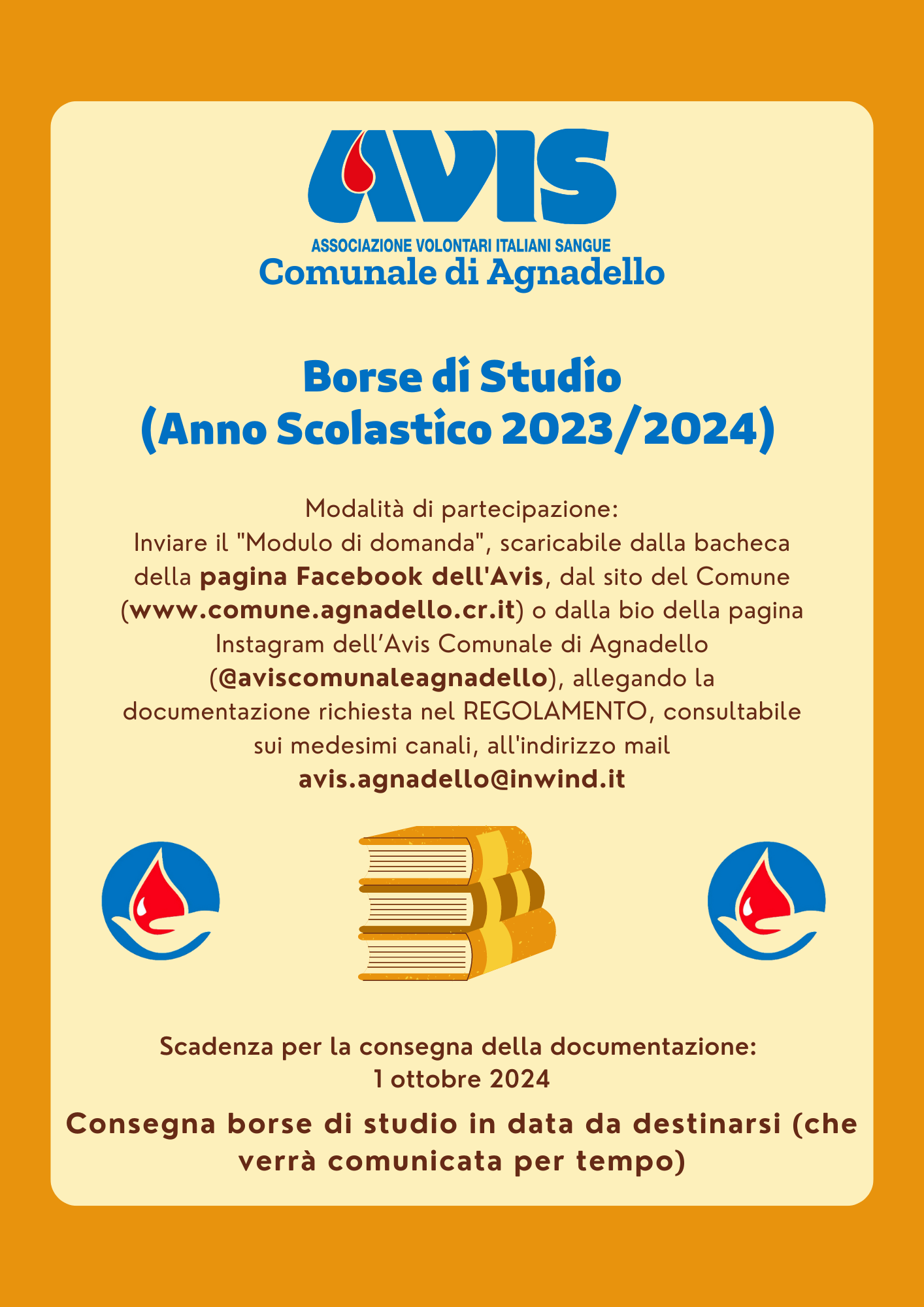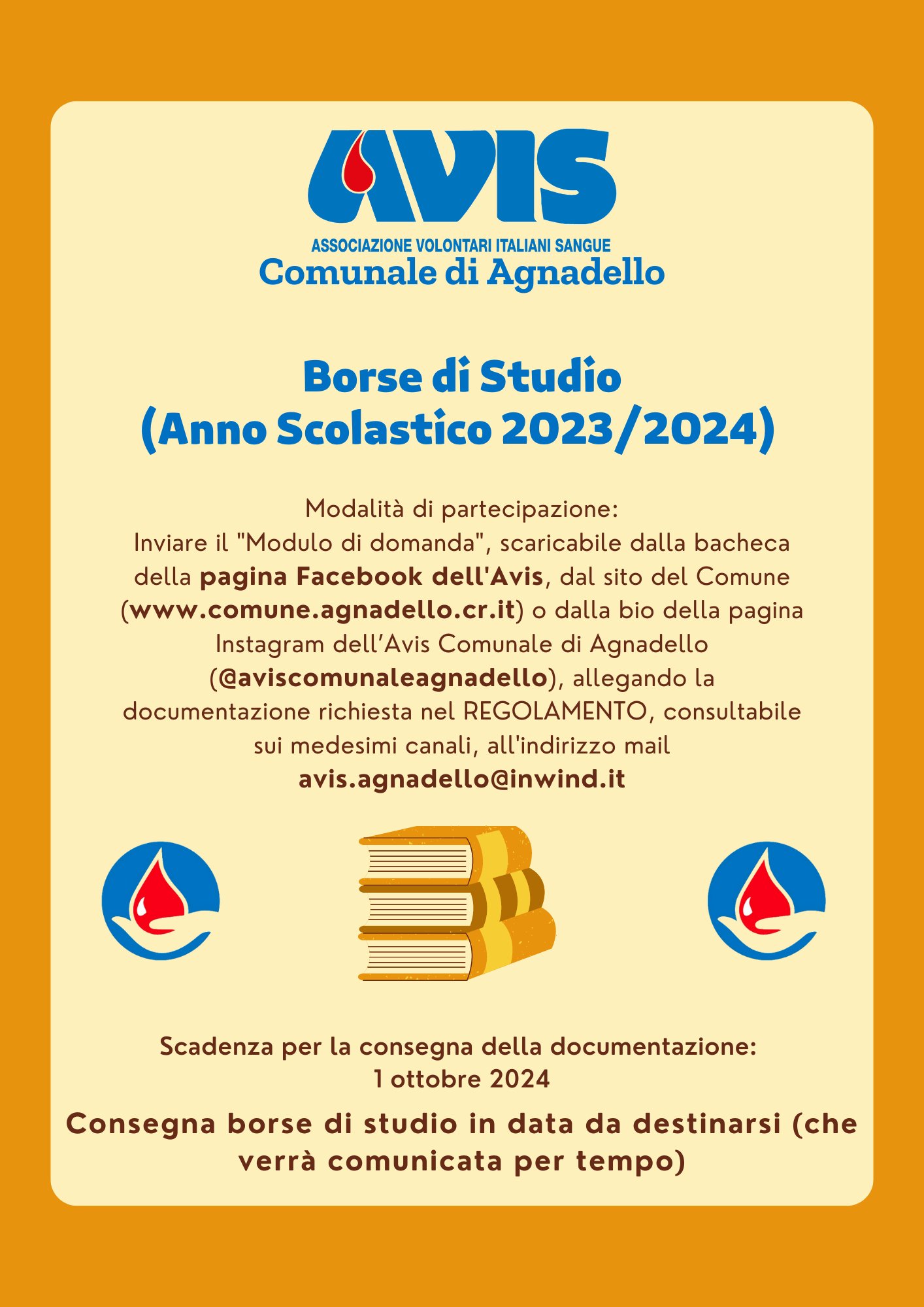 AVIS AGNADELLO - BORSE DI STUDIO A.S. 2023/2024
