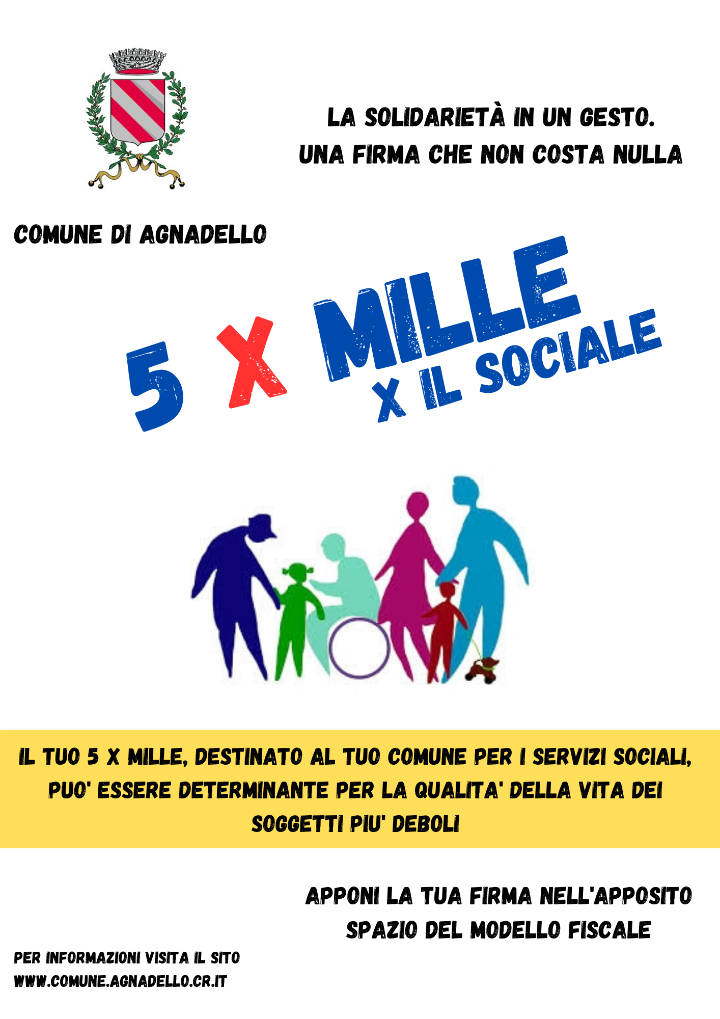 Dona il cinque per mille al Comune di Agnadello per le attivitą del Servizio Sociale